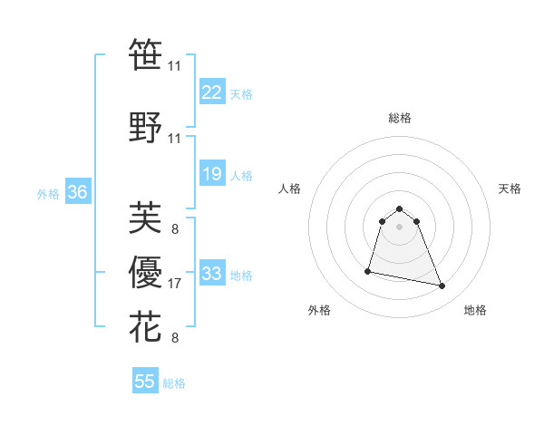 笹野 芙優花さんを姓名の画数から五運を鑑定
