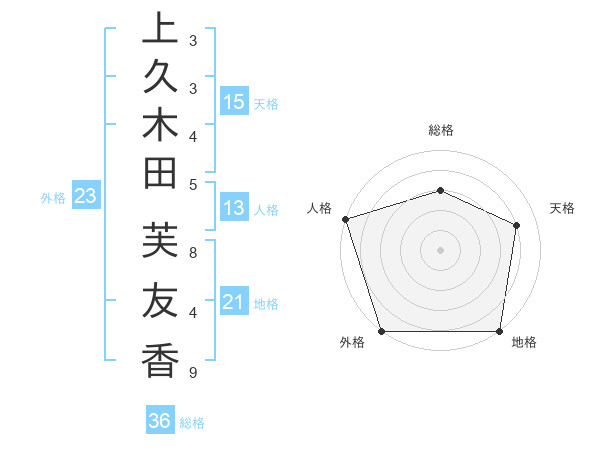 上久木田 芙友香さんを姓名の画数から五運を鑑定