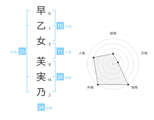 早乙女 芙実乃さんを姓名の画数から五運を鑑定