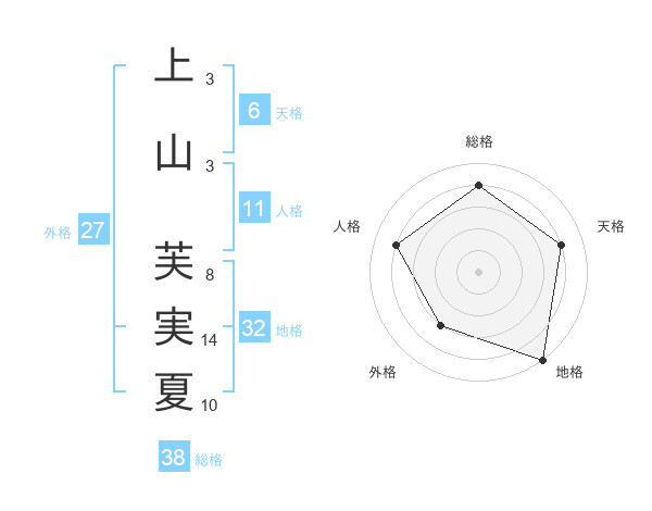 上山 芙実夏さんを姓名の画数から五運を鑑定