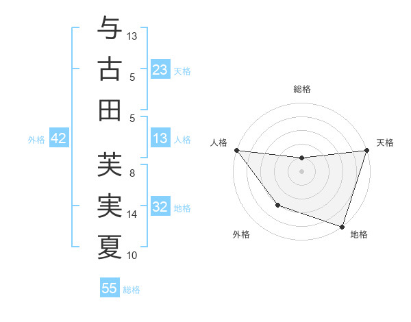 与古田 芙実夏さんを姓名の画数から五運を鑑定