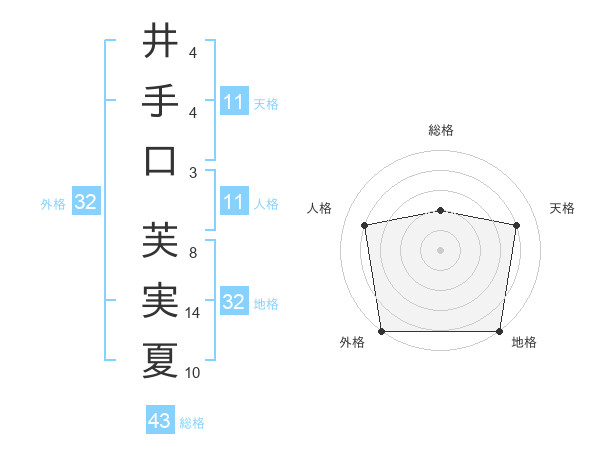 井手口 芙実夏さんを姓名の画数から五運を鑑定