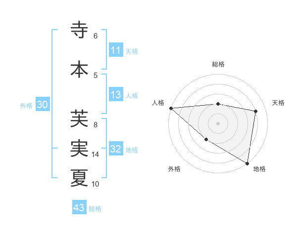 寺本 芙実夏さんの総格は43画の2点!