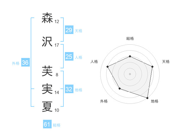 森沢 芙実夏さんの総格は61画の3点!
