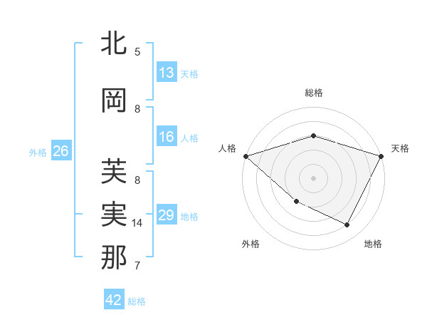 北岡 芙実那さんを姓名の画数から五運を鑑定