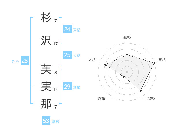 杉沢 芙実那さんを姓名の画数から五運を鑑定