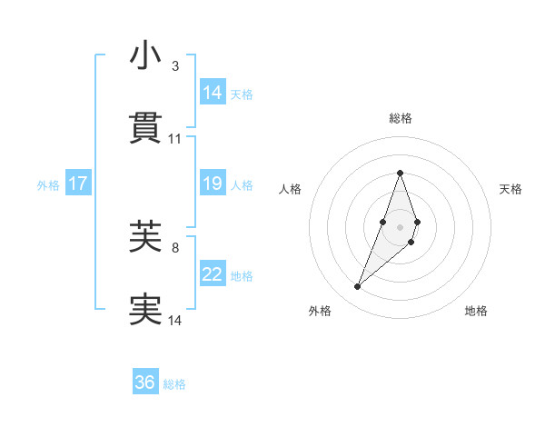 小貫 芙実さんの天格は14画の1点!