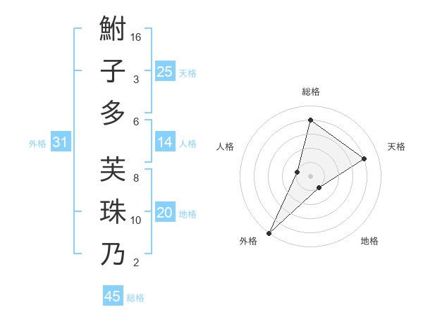 鮒子多 芙珠乃さんの外格は31画の5点!