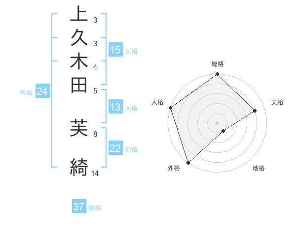 上久木田 芙綺さんの総格は37画の5点!