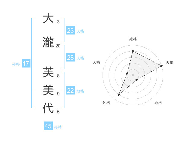 大瀧 芙美代さんを姓名の画数から五運を鑑定