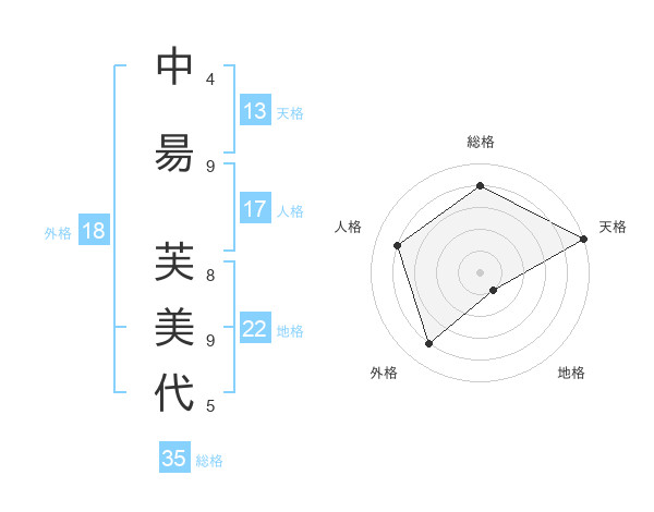 中昜 芙美代さんを姓名の画数から五運を鑑定