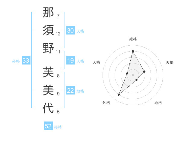 那須野 芙美代さんを姓名の画数から五運を鑑定