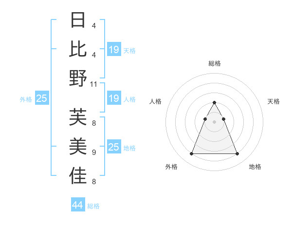 日比野 芙美佳さんを姓名の画数から五運を鑑定
