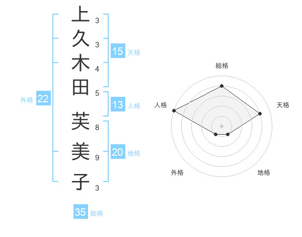 上久木田 芙美子さんの総格は35画の4点