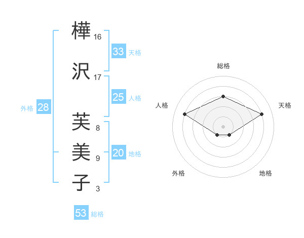 樺沢 芙美子さんを姓名の画数から五運を鑑定