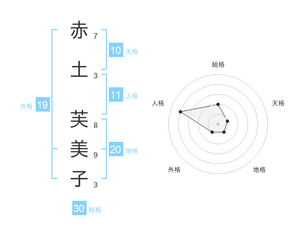 赤土 芙美子さんを姓名の画数から五運を鑑定