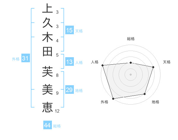 上久木田 芙美恵さんを姓名の画数から五運を鑑定
