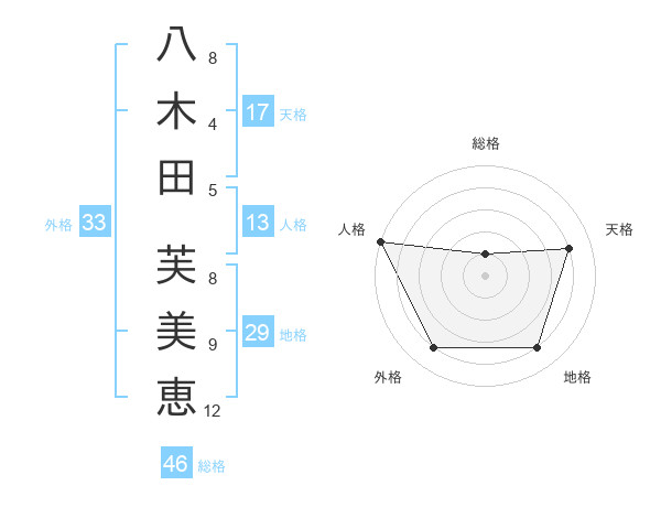 八木田 芙美恵さんを姓名の画数から五運を鑑定