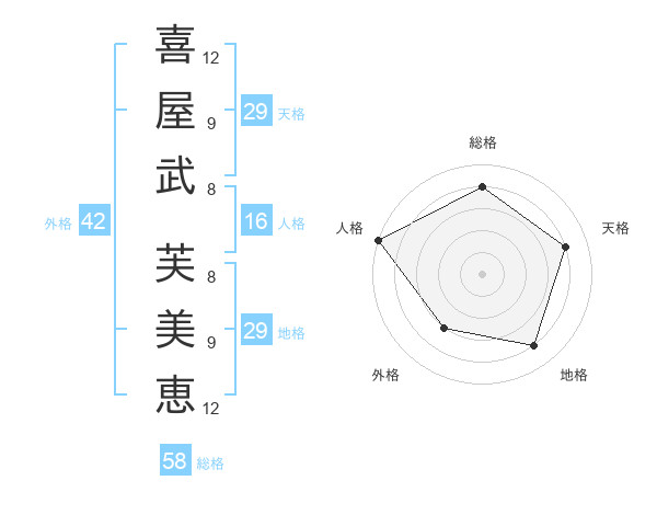 喜屋武 芙美恵さんの天格は29画の4点!