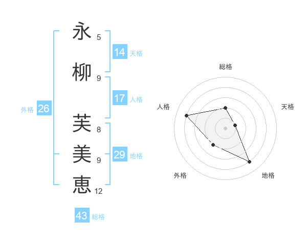 永柳 芙美恵さんの天格は14画の1点!