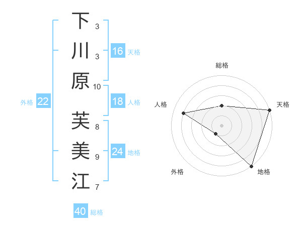 下川原 芙美江さんを姓名の画数から五運を鑑定