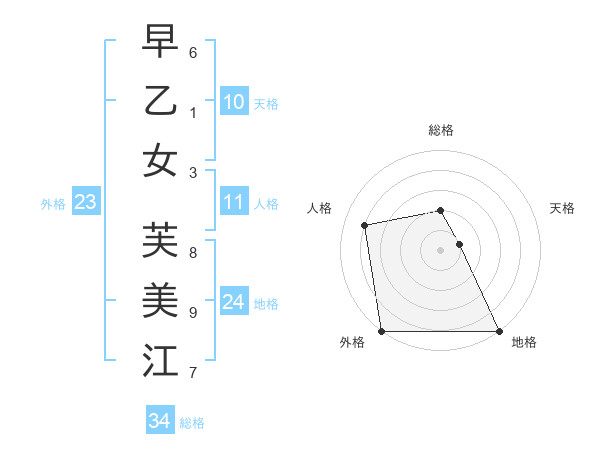 早乙女 芙美江さんを姓名の画数から五運を鑑定