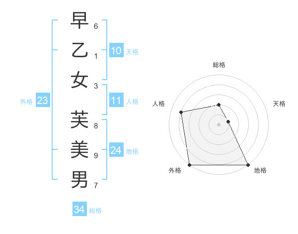 早乙女 芙美男さんを姓名の画数から五運を鑑定