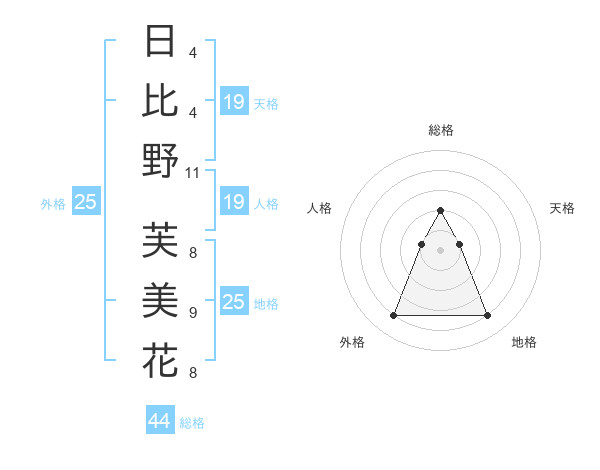 日比野 芙美花さんの総格は44画の2点!