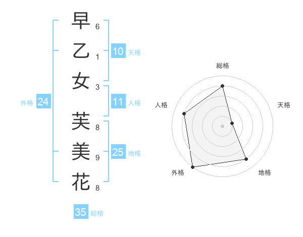 早乙女 芙美花さんを姓名の画数から五運を鑑定