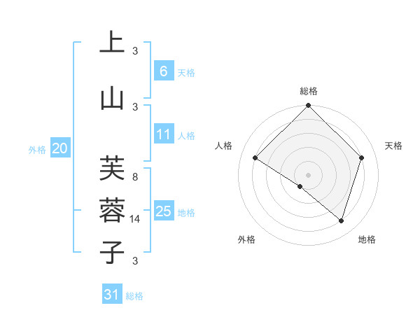 上山 芙蓉子さんを姓名の画数から五運を鑑定