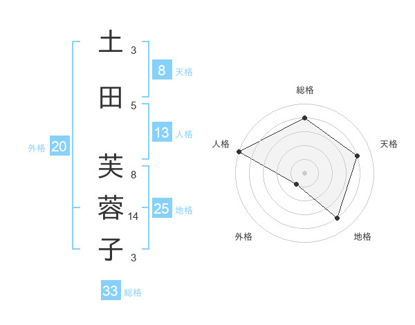 土田 芙蓉子さんを姓名の画数から五運を鑑定