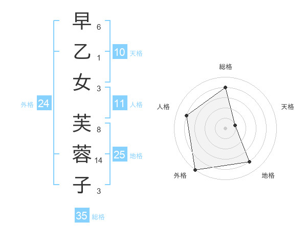 早乙女 芙蓉子さんの総格は35画の4点