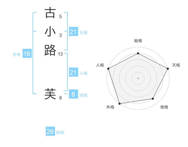 古小路 芙さんの天格は21画の5点!
