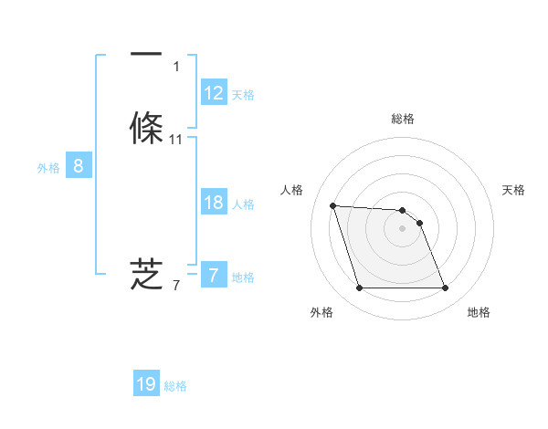 一條 芝さんの天格は12画の1点!