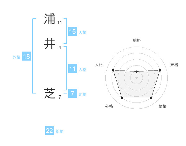 浦井 芝さんの総格は22画の1点!
