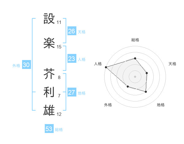 設楽 芥利雄さんを姓名の画数から五運を鑑定
