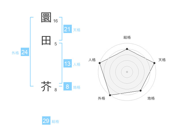 占い結果は姓名判断である以上、良い場合も悪い場合もありますが、決してお名前を誹謗中傷するものでなく、画数の自動計算によって得られたものです。また、本サイトの検索によって得られた鑑定結果で、第三者を誹謗中傷したり名誉を棄損するような行為を禁じます。