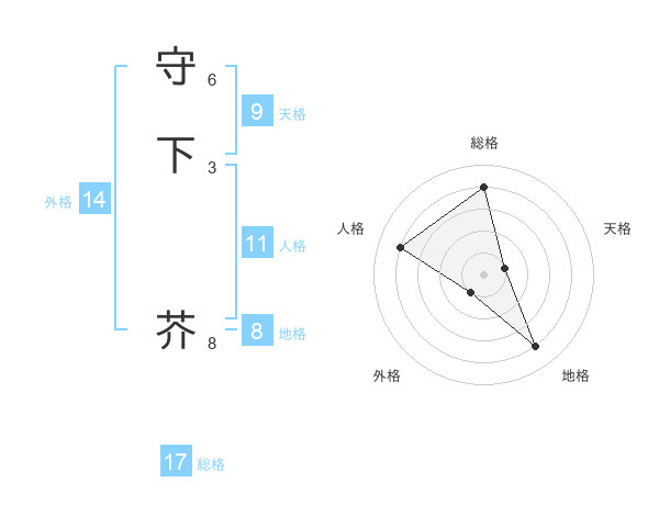 守下 芥さんの総格は17画の4点!