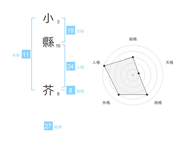 小縣 芥さんの総格は27画の3点!
