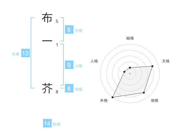 布一 芥さんの外格は13画の5点!