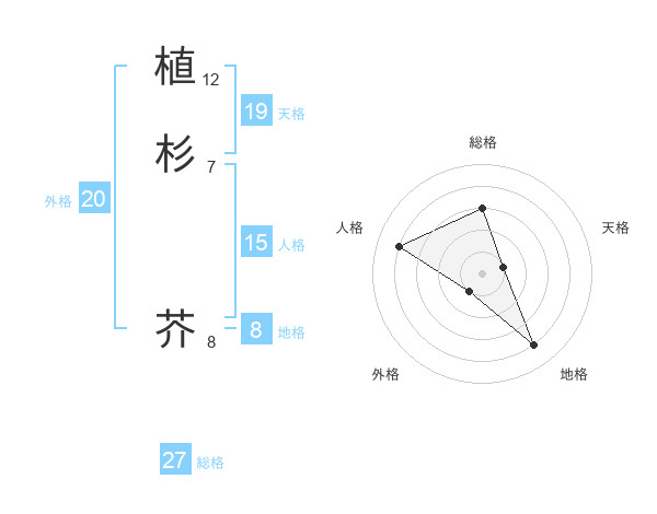 植杉 芥さんを姓名の画数から五運を鑑定