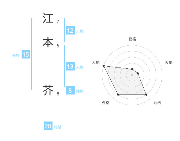 江本 芥さんの天格は12画の1点!