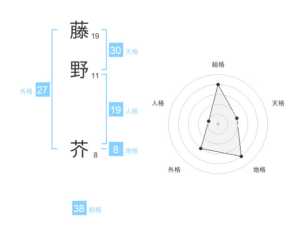 藤野 芥さんの総格は38画の4点!