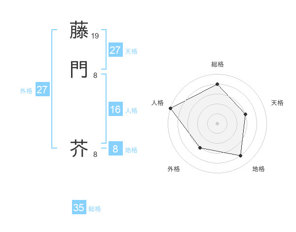 藤門 芥さんの天格は27画の3点!