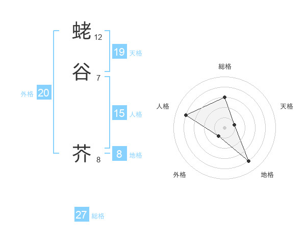 蛯谷 芥さんの総格は27画の3点!