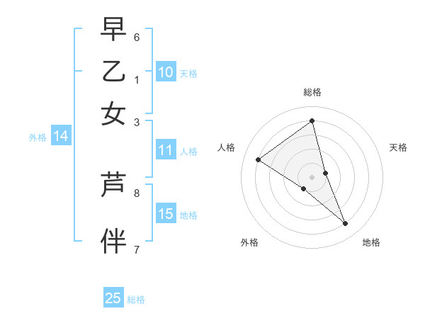 早乙女 芦伴さんを姓名の画数から五運を鑑定