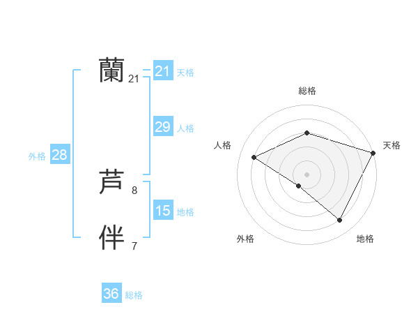 蘭 芦伴さんの天格は21画の5点!