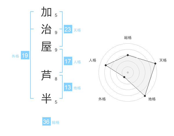 加治屋 芦半さんを姓名の画数から五運を鑑定