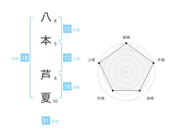八本 芦夏さんを姓名の画数から五運を鑑定