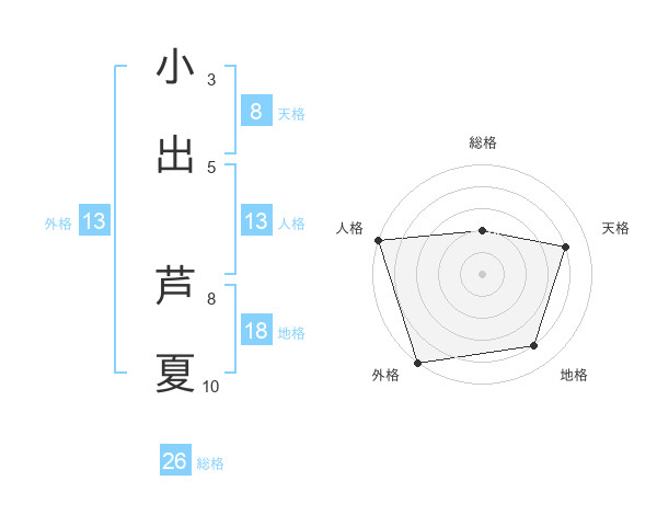小出 芦夏さんを姓名の画数から五運を鑑定